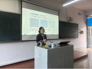 迎新现场,人文学院负责人欢迎新生,介绍学校发展情况,何婷老师详细介绍数字媒体艺术专业情况,帮助同学们快速了解所学领域与专业发展,激发学习兴趣,做好学习规划。