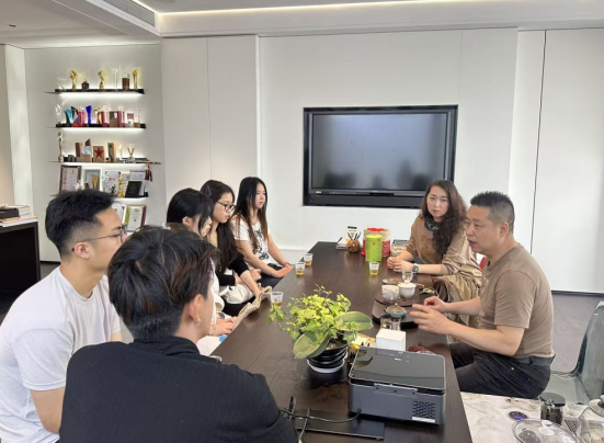 交流会上,苏万福总经理介绍了公司发展历程、核心业务及未来规划,阐述了环境设计行业发展趋势,明确企业对人才的核心要求,强调既需扎实的专业理论,更注重实践能力、创新思维及数字化工具运用,表达了校企深度合作、吸纳优秀学子的意愿。张晓慧老师介绍了专业人才培养方案、课程设置及学生实践成果,提出将对接企业需求优化课程体系,强化实践教学,助力学生缩短校园与职场距离。随行学生主动询问岗位要求、职业发展路径等问题,交流氛围热烈。