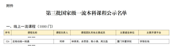 ​创意与传播系设计专业群一动画课程获得国家级一流课程