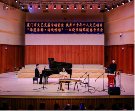 音乐会以“钢琴+”多元融合为特色,首创性呈现多部跨文化作品:钢琴与民乐合奏版《梁祝》(节选改编)突破中西乐器界限,赋予经典新维度;中国音乐金钟奖得主赵墨佳原创《越人歌》融合钢琴、七声调式古筝与打击乐,重现民族音乐精髓;厦门首演的钢琴三重奏《台湾叙事曲》融入福佬系、客家民谣及少数民族元素,以旋律呼应两岸同源;朱晓乐教授原创的《大梦华厦幻想曲》则串联《鼓浪屿之波》《华厦颂》等旋律,回溯学院三十年教育历程;压轴曲目《如愿》由学生合唱团献唱,传递青年传承使命。
