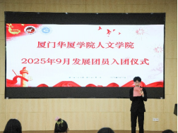秋日的暖阳洒满校园,鲜红的团旗迎风招展。2025年9月28日中午,厦门华厦学院人文学院2025年9月发展团员入团仪式在明德厅2隆重举行。人文学院党总支副书记黄荣老师、人文学院学生第一党支部书记卢嘉垒老师、人文学院学生第二党支部书记李文丽老师、人文学院团委书记吴维闽老师、人文学院团委副书记林彤燕老师、人文学院辅导员范满满老师、申玉瑶老师、李敏玲老师、徐兰老师以及全体新生团员参加了仪式。22名青年学生怀揣着激动与憧憬,在老师与老团员的见证下,正式加入中国共产主义青年团,开启青春的崭新篇章。