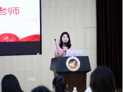 第六环节,人文学院团委书记吴维闽老师发表讲话。她首先对新团员们表示祝贺,随后结合新时代青年的使命,叮嘱大家“要把入团作为成长的新起点,将个人梦想融入国家发展大局,在学习中增长本领,在实践中锤炼品格,让青春在强国建设的征程中绽放光彩”。