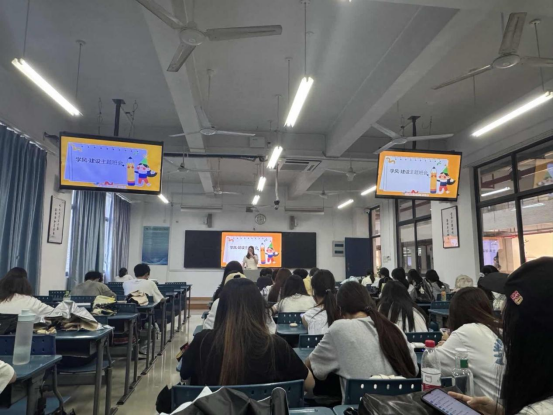 个人层面,班会推广学风工具包:鼓励学生通过“便利贴写小目标”“电子日历标注上课时间”“每晚两分钟复盘课堂收获”等方式,将学风要求转化为日常习惯。班级层面推行特色措施,例如:鼓励学生寻找学习搭子,两人一组相互提醒出勤、分享专业笔记;建立“考勤闭环”,从早扫码签到、课堂随机抽问,到课后晒笔记、班委统计,形成完整监督链条;学院层面,辅导员承诺及时响应学生疑问,同时提供“研招网、国家公务员局、留学服务中心”等官方资源导航,帮助学生精准获取信息。