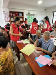 手工制作环节以“红色记忆”为主题,组织老年人制作简易红色主题手工艺品,过程中志愿者耐心协助,引导老人回忆红色故事,让大家在动手实践中深化对红色文化的理解,现场氛围温馨融洽。