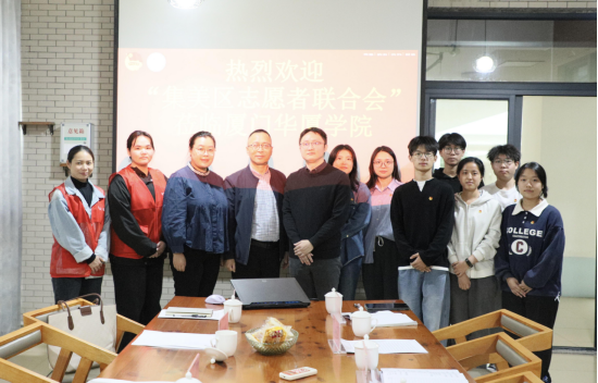 为深化校地志愿服务合作,分享实践经验,凝聚志愿力量,2025年12月11日,集美区志愿者联合会莅临我校,与人文学院党总支书记王德华老师、人文学院党总支副书记黄荣老师、人文学院团委书记吴维闽老师、人文学院团委副书记林彤燕老师及学院五支实践队伍代表开展了深入的交流座谈。