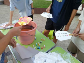 活动当日,钟楼前的创意小天地里,参与者们带着对中秋的憧憬围坐一堂。无需专业绘画基础,素白扇面就是最好的画布:有人凝神勾勒一轮圆月,让清辉洒满扇面;有人轻描几枝桂影,让暗香浮动其间;还有人将家人团聚的温馨场景融入笔墨,每一笔蘸取的不仅是颜料,更是对团圆的珍视。
