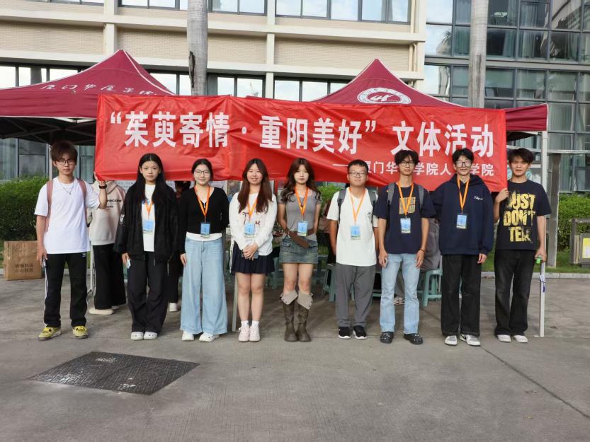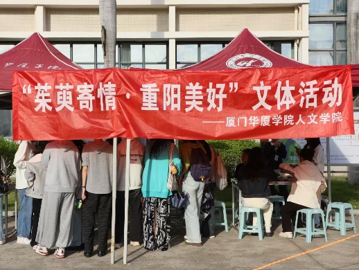 九九重阳,岁岁安康。2025年11月4日下午,为迎接重阳佳节,厦门华厦学院人文学院“茱萸寄情,重阳美好”主题文体活动在俊秀图书馆前热烈开展。此次活动由人文学院团委学生会自律会精心策划,为人文学子带来了一场沉浸式的传统文化体验。