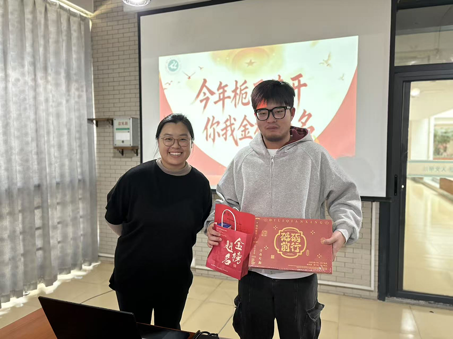 会议先由李敏玲老师从学习方法上给出了最后的冲刺建议,考场中需要注意的事项,更从心理调适方面进行了疏导;随后黄荣副书记肯定了同学们在备考期间所付出的辛勤汗水和展现出的坚韧毅力;最后王书记将学院精心准备的“考研暖心礼盒”一一送到同学们手中。这份沉甸甸的礼盒不仅装满了学校的关爱,更承载着对未来的期许。